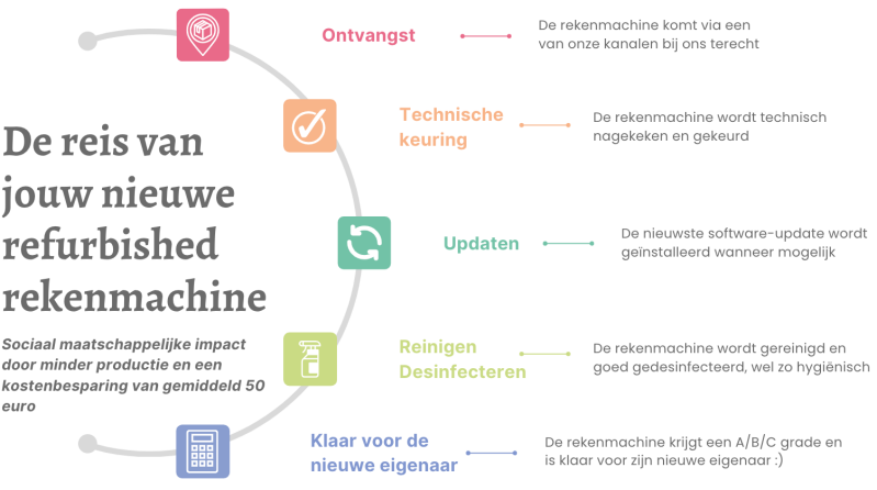 In 2020 zijn we begonnen met het aanbieden van betaalbare refurbished tweedehands grafische rekenmachines. Waarom? Omdat we uit eigen ervaring weten hoe prijzig deze apparaten zijn en zodat jij geld kunt besparen zonder in te leveren op kwaliteit. Al onze rekenmachines worden grondig getest en worden geleverd met een oplaadkabel en beschermingsklepje. Scroll naar beneden voor meer informatie over de reis van jouw nieuwe refurbished rekenmachine!